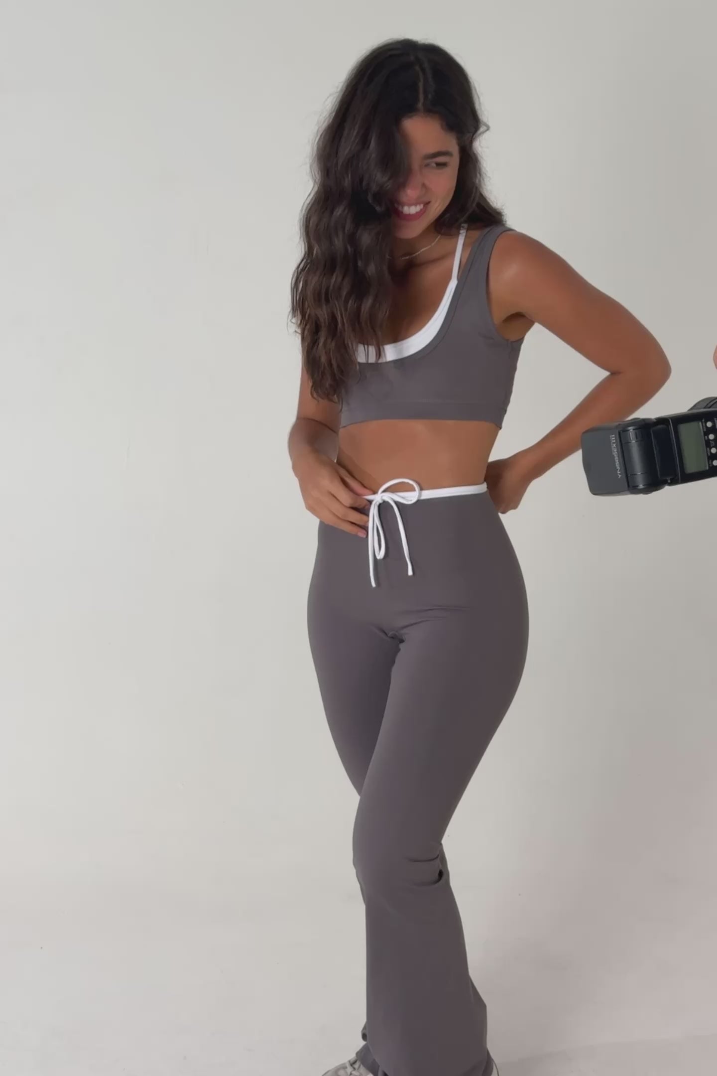A nova flare possui cós alto com viés na cor branca e amarração com laço. Perfeita pra usar com o Top Basic e Top Yam. Tecido em poliamida tecnológica com proteção UV50+ (que não se perde após a lavagem), com textura flexível e super confortável. Sugestão: use com calcinha sem costura