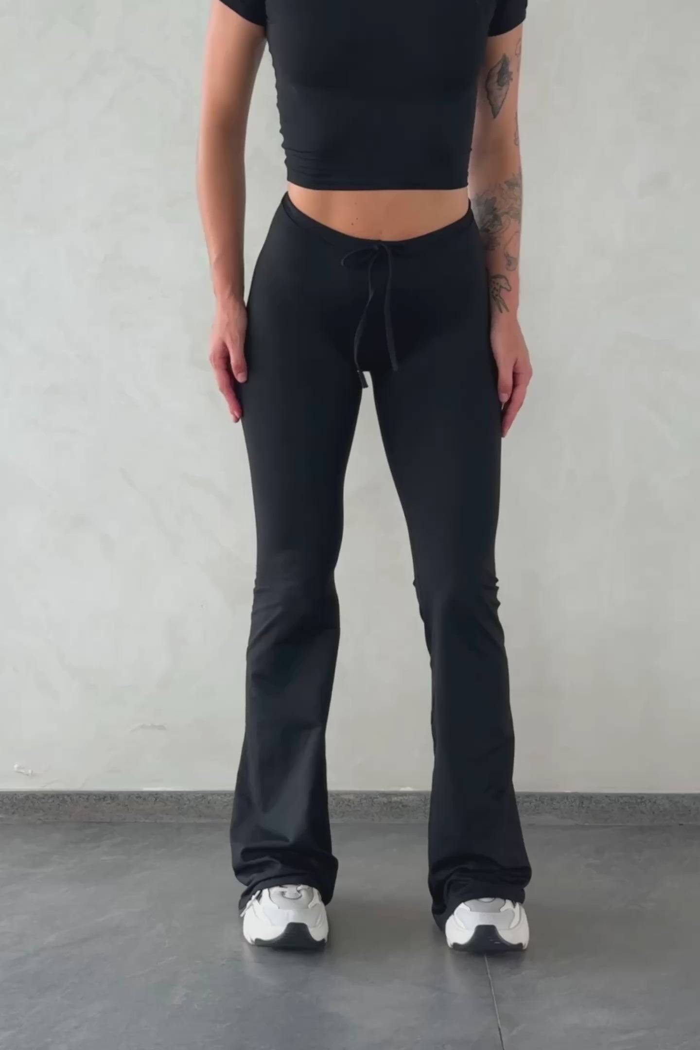 A nova flare possui cós alto e amarração com laço. Perfeita pra usar com nossos tops pretos (e o Top Yam branco). Tecido em poliamida tecnológica com proteção UV50+ (que não se perde após a lavagem), com textura flexível e super confortável. Sugestão: use com calcinha sem costura.