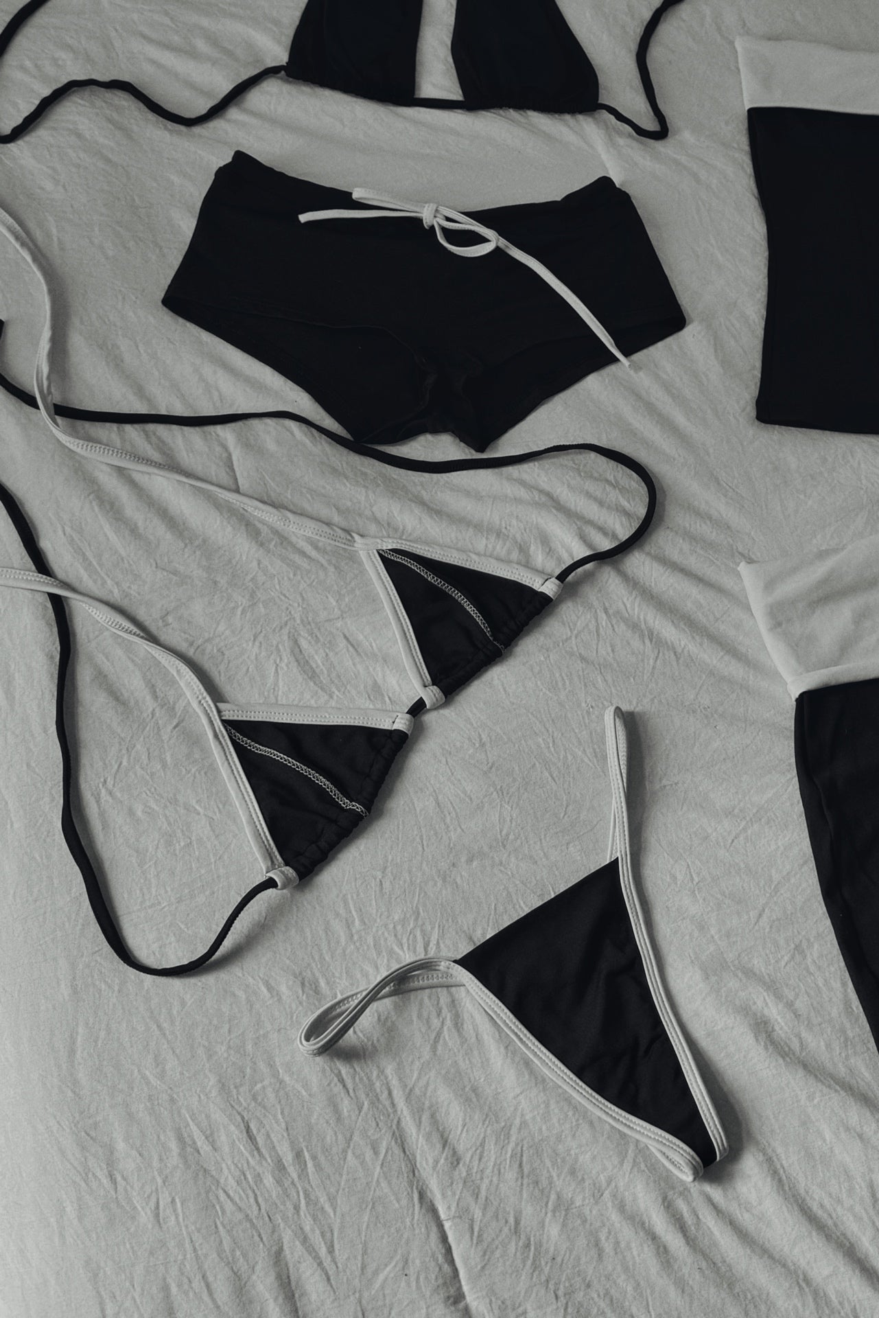 como vocês amam) agora com acabamento em viés mais fino e flexível. Feita em camada dupla pra não marcar. Faça o match perfeito com o novo top mini bicolor ou o top max (com alças mais largas).
